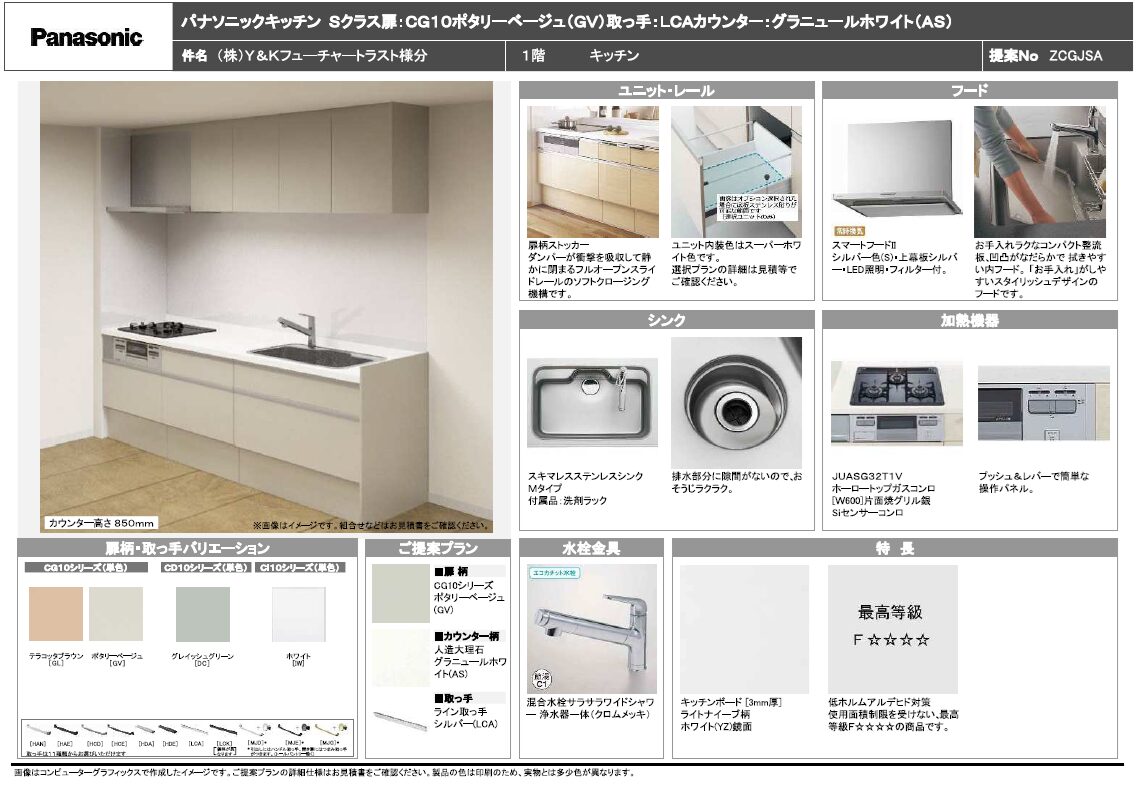システムキッチンSクラス 商品代定価 1,358.588円(税込み・施工費別)